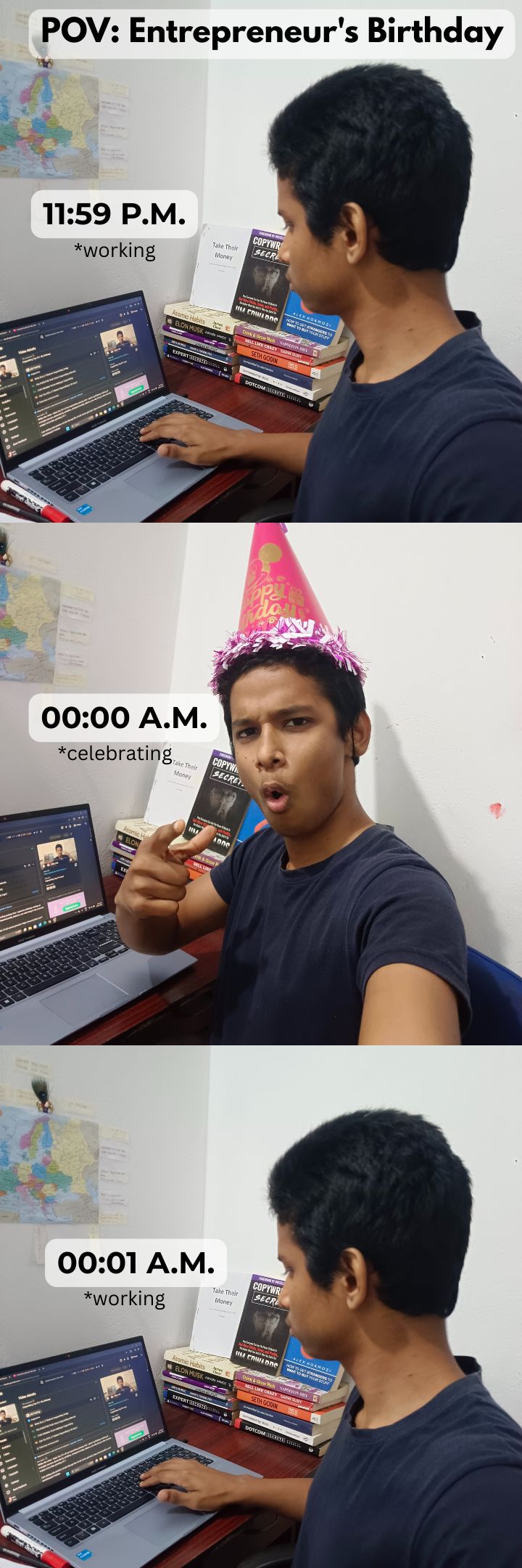 And who knows, the internet like-minded entrepreneurs and the future millionaires you're talking with, are gonna all celebrate each other's birthdays somewhere on an island in Bali while drinking coconut water on the sea beach with 12:00 pm sun.