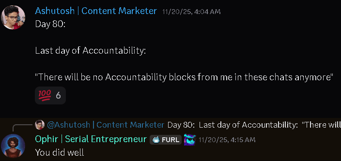 So, the Accountability will always be there, not in discord but in my work as usual.