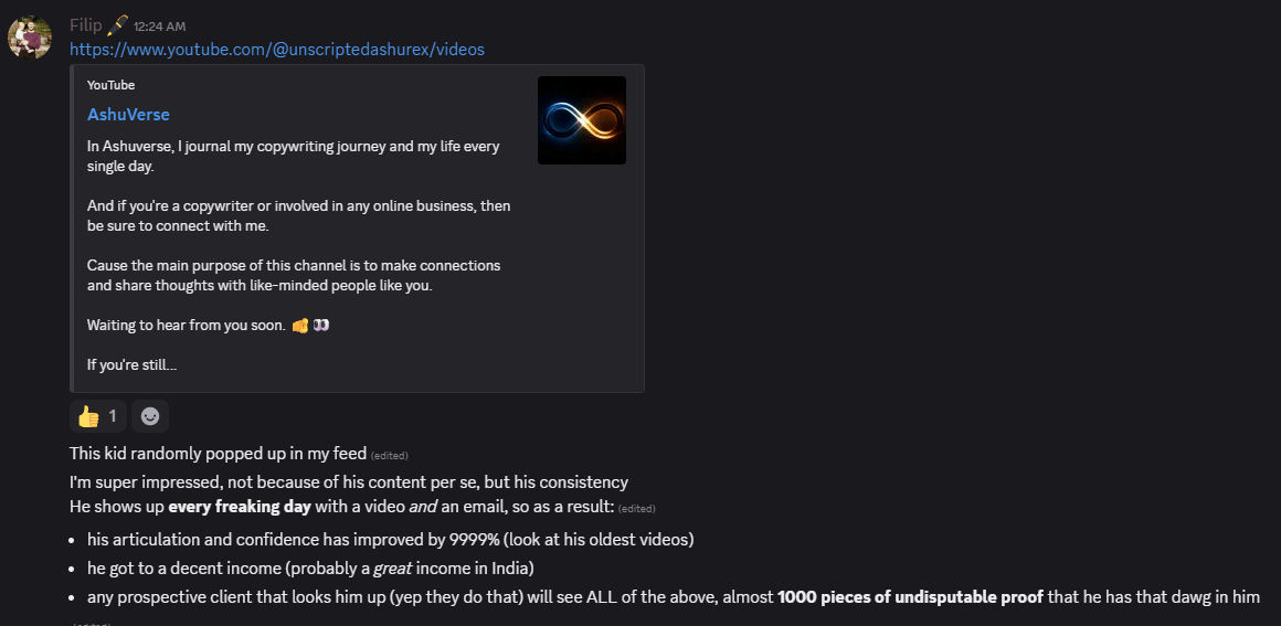 This dude wrote a whole paragraph about me in the “COPY THAT” server.